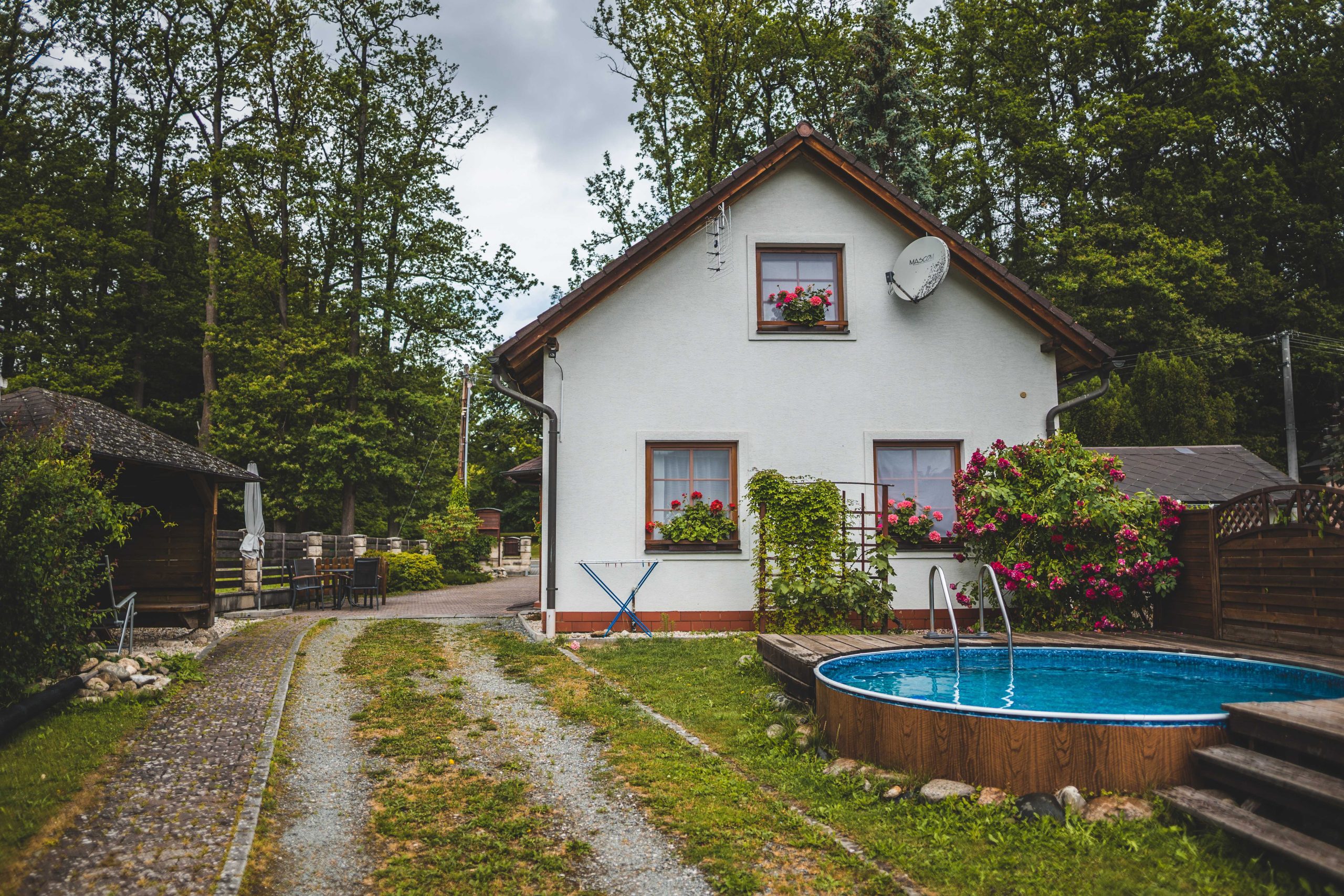 Objekt má vlastní zahradu, venkovní posezení, ohniště s grilem a v létě malý bazén na osvěžení.
